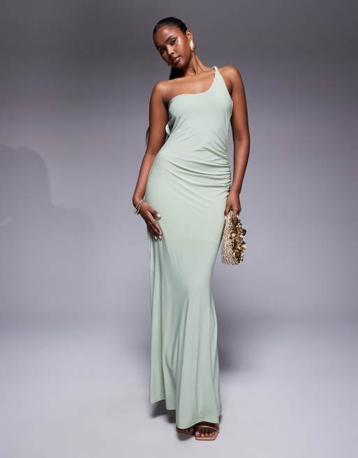 ASOS DESIGN – Grön, enaxlad maxiklänning med rysch