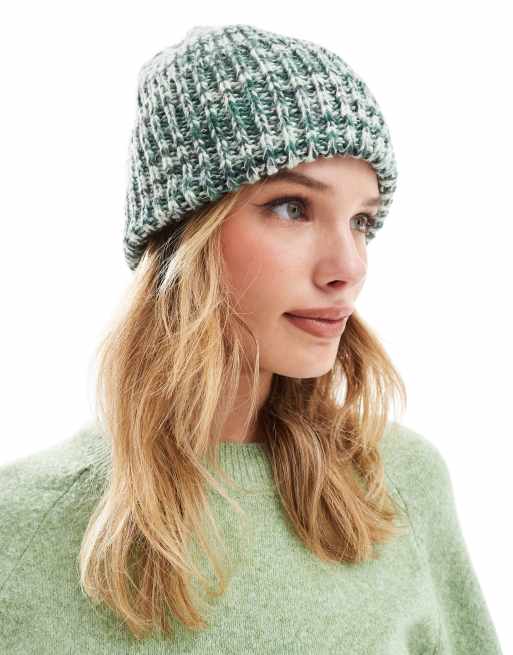 ASOS DESIGN – Grön grovstickad mössa med melerad effekt