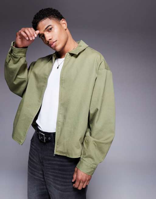 ASOS DESIGN – Grön harrington-jacka med boxig passform och tvättad finish