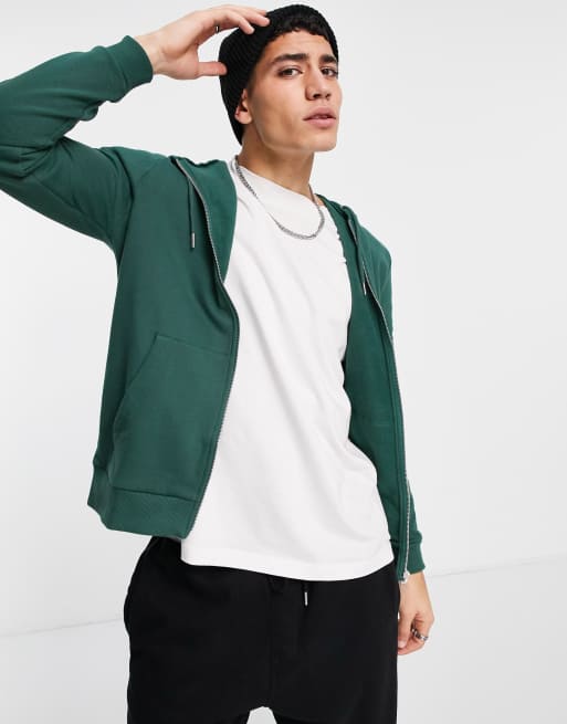 ASOS DESIGN – Grön huvtröja med dragkedja