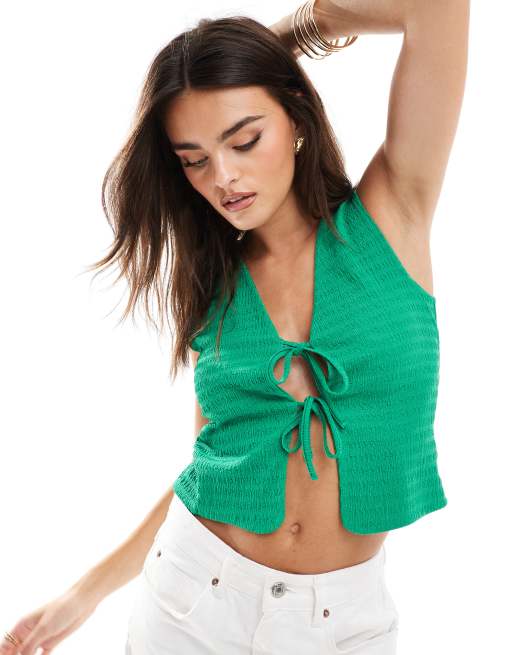 ASOS DESIGN – Grön kostymväst med textur och knytning framtill