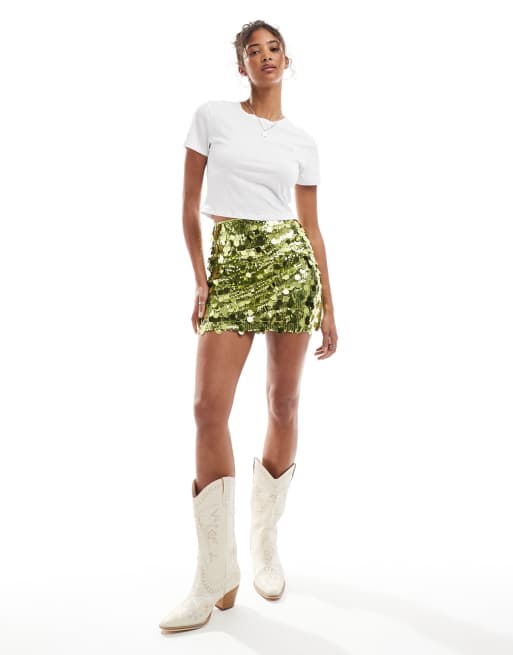 ASOS DESIGN – Grön minikjol med blandade paljetter