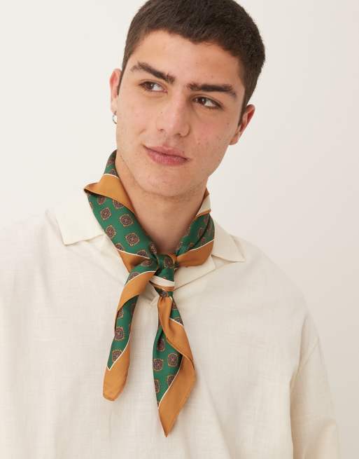 ASOS DESIGN – Grön, mönstrad hårscarf i satin