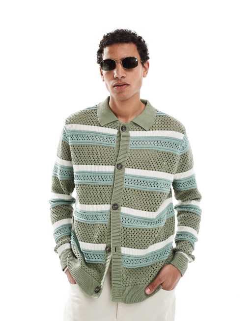 ASOS DESIGN – Grön och vitrandig, pointellestickad kofta
