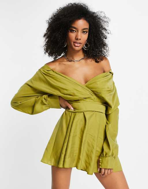 ASOS DESIGN – Grön skjortklänning i tvättat material och minilängd med bara axlar och knytdetalj