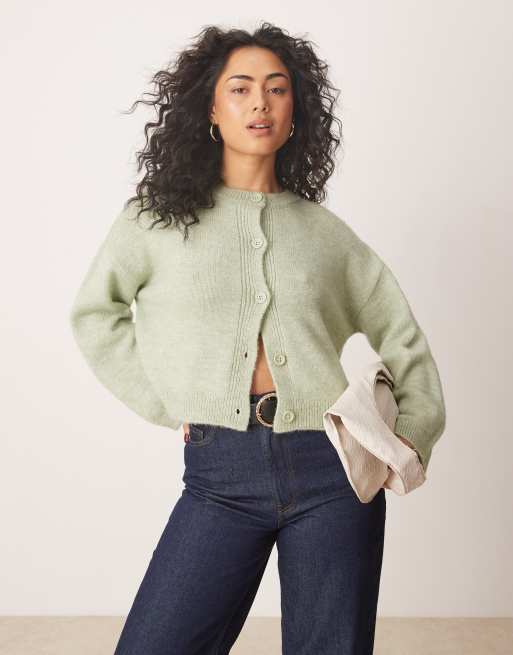 ASOS DESIGN – Grön, stickad kofta med vida muddar