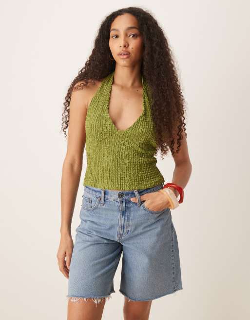 ASOS DESIGN – Grön, strukturerad topp med halterneck