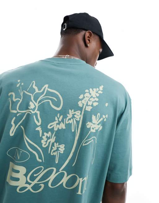 ASOS DESIGN – Grön t-shirt i oversize med blomtryck baktill
