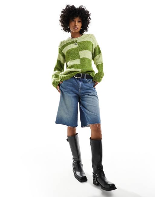 ASOS DESIGN – Grön tröja med rund halsringning och jacquardmönster