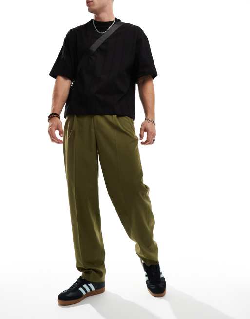 ASOS DESIGN – Gröna, avsmalnande finbyxor i oversize med halv elastisk midja