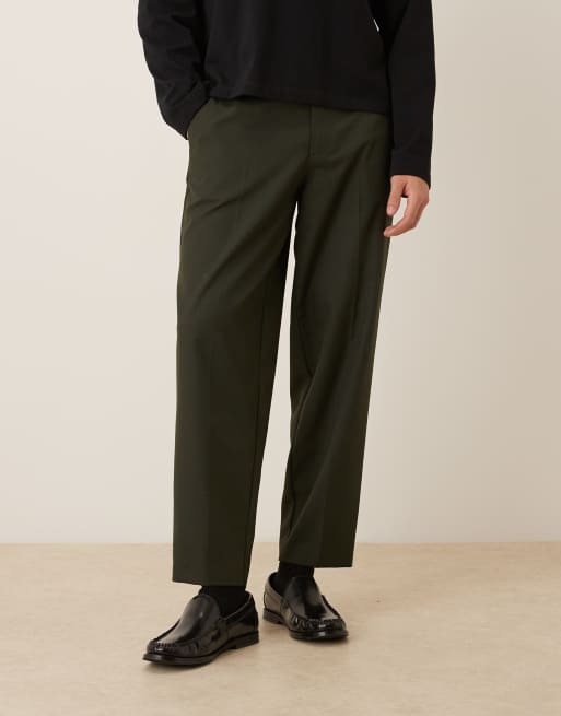 ASOS DESIGN – Gröna, fiskbensmönstrade finbyxor i oversize med avsmalnande passform