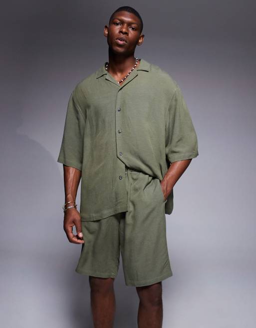 ASOS DESIGN – Gröna, långa shorts i linne, del av set