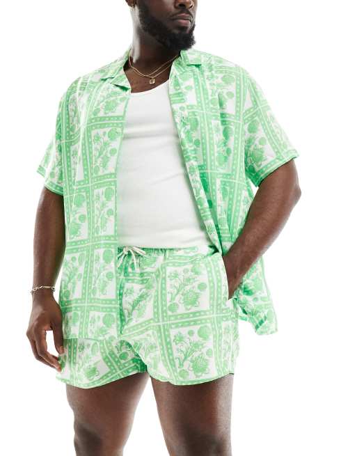ASOS DESIGN – Gröna, mönstrade badshorts med kortare längd
