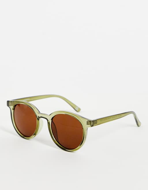 ASOS DESIGN – Gröna, runda solglasögon med bruna glas