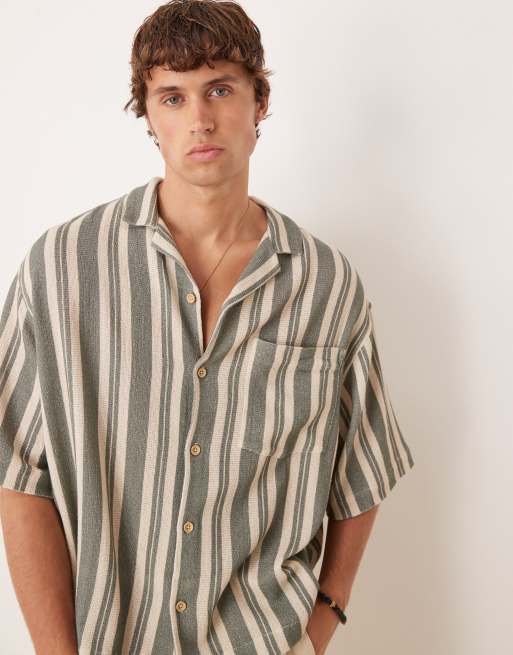 ASOS DESIGN – Grönrandig skjorta i oversize med platt krage