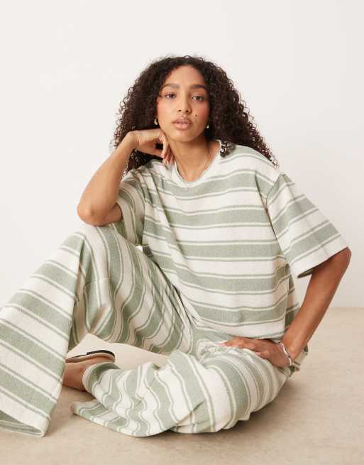 ASOS DESIGN – Grönrandig, stickad t-shirt i oversize, del av set