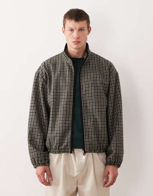ASOS DESIGN – Grönrutig träningsjacka i oversize och yllelook