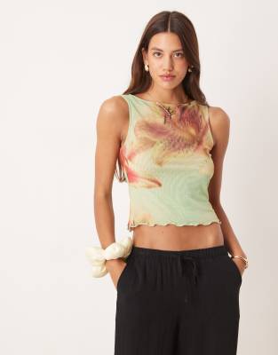 ASOS DESIGN – Grönt, blommigt linne i mesh med bred ringning