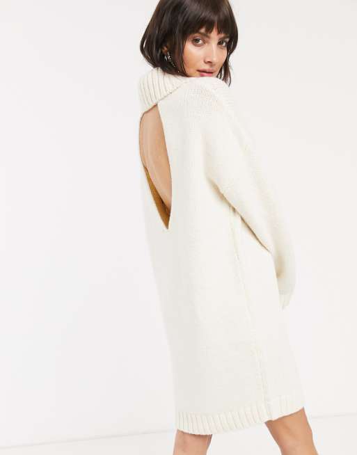 ASOS DESIGN – Grovstickad miniklänning med polokrage och öppen rygg
