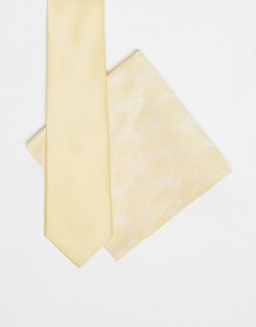 ASOS DESIGN – Gul, blommig slips och bröstnäsduk