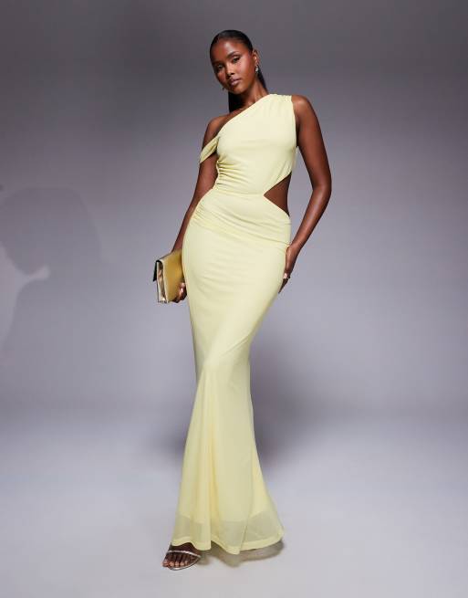 ASOS DESIGN – Gul maxiklänning med rysch, sänkt axelband och utskurna detaljer
