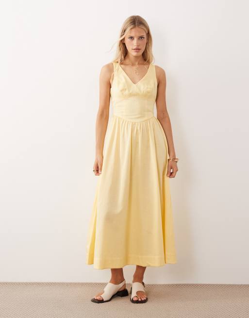 ASOS DESIGN – Gul maxiklänning med v-ringning, dekorativ söm och markerad midja