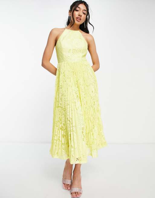 ASOS DESIGN – Gul plisserad balklänning i midilängd och spets