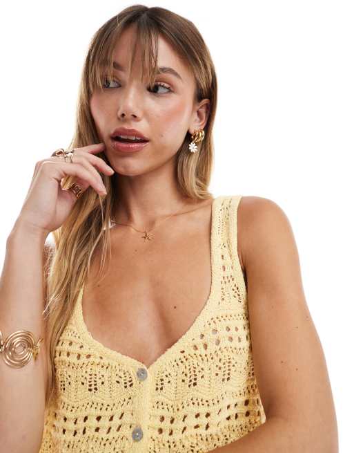ASOS DESIGN – Gul pointelle-stickat linne med strukturgarn