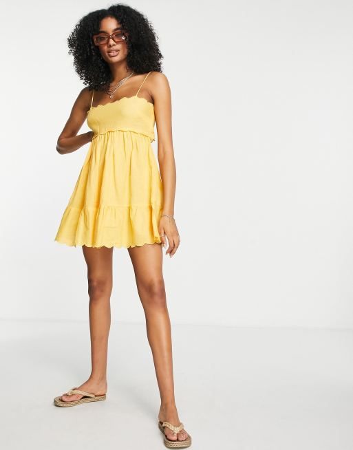 ASOS DESIGN – Gul, uddkantad mini-sommarklänning med utskuren detalj baktill