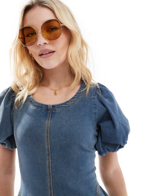 ASOS DESIGN – Gula, gradtonade, runda solglasögon i 70-talsstil och oversize