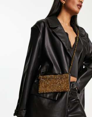 ASOS DESIGN – Guldfärgad liten axelremsväska med pärlor