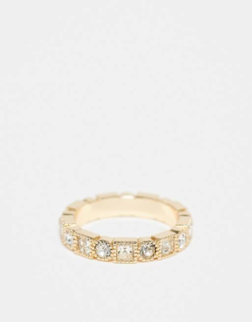 ASOS DESIGN – Guldfärgad ring med fyrkantiga och runda smyckesstenar