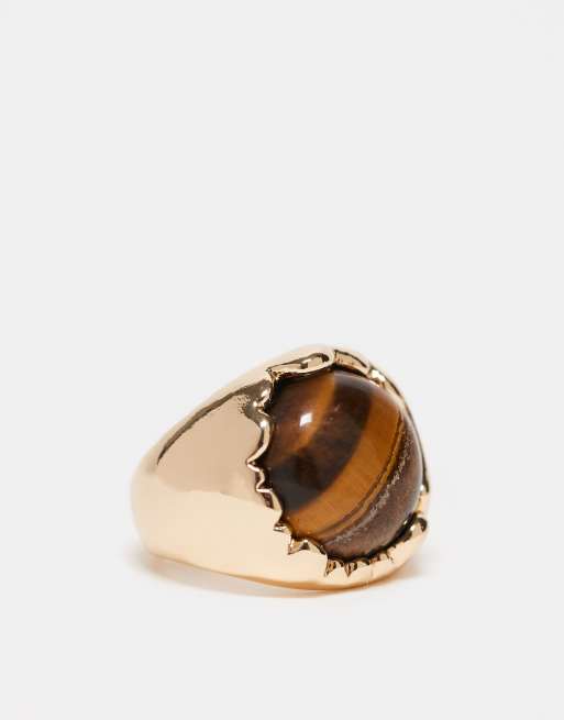 ASOS DESIGN – Guldfärgad ring med halvädelstenen tigeröga