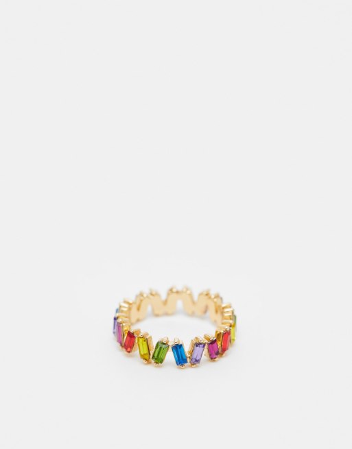 ASOS DESIGN – Guldfärgad ring med regnbågsfärgade stenar