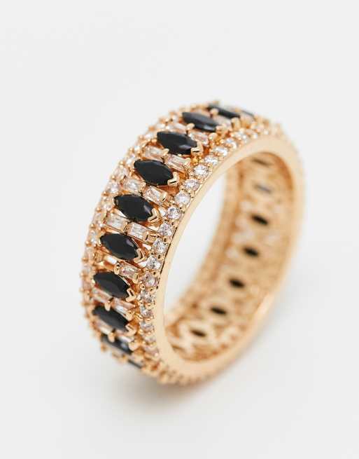 ASOS DESIGN – Guldfärgad ring med svarta markisstenar