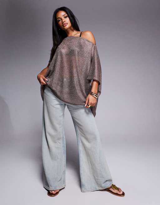 ASOS DESIGN – Guldfärgad, skir, slouchy topp i oversize med en bar axel