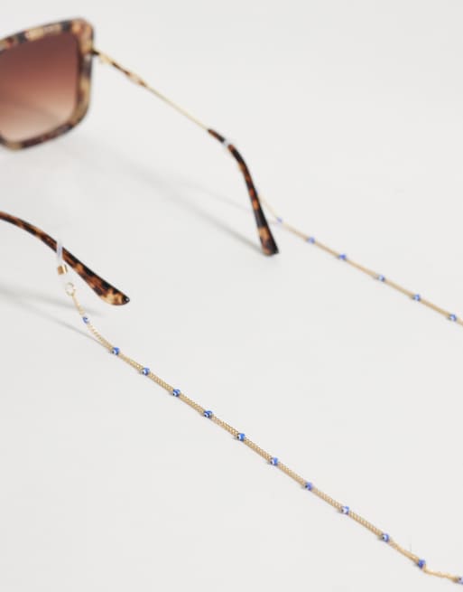 ASOS DESIGN – Guldfärgad solglasögonkedja med blå ögondetaljer