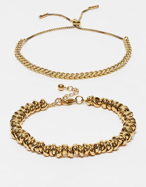 ASOS DESIGN – Guldfärgade armband i rostfritt stål för festivalen med pärlor och länkar, 2-pack