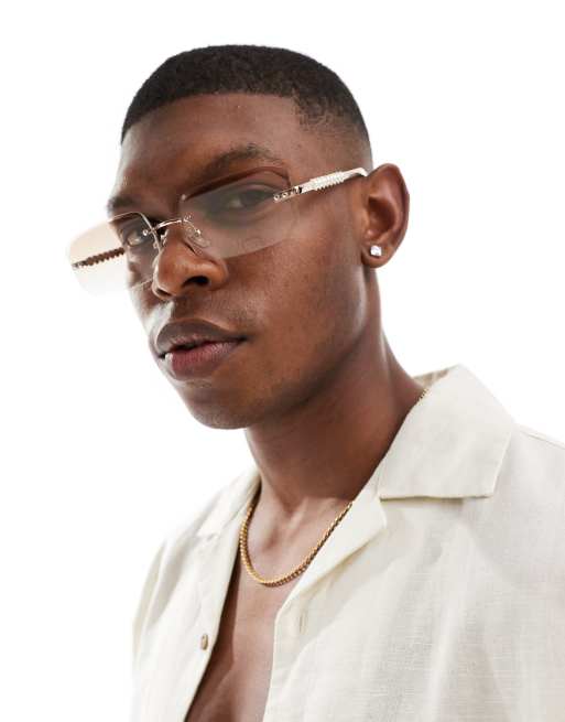 ASOS DESIGN – Guldfärgade, båglösa solglasögon med pärlor