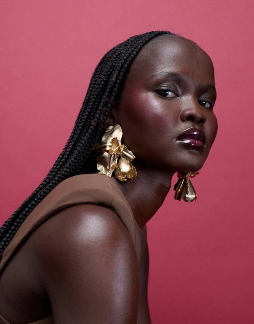 ASOS DESIGN – Guldfärgade, borstade stiftörhängen med stora blommor