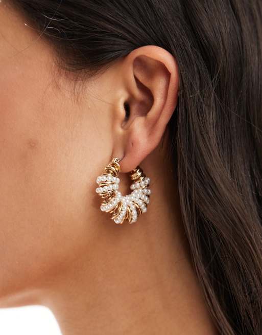 ASOS DESIGN – Guldfärgade creoler med ringar och fuskpärlor, 30mm