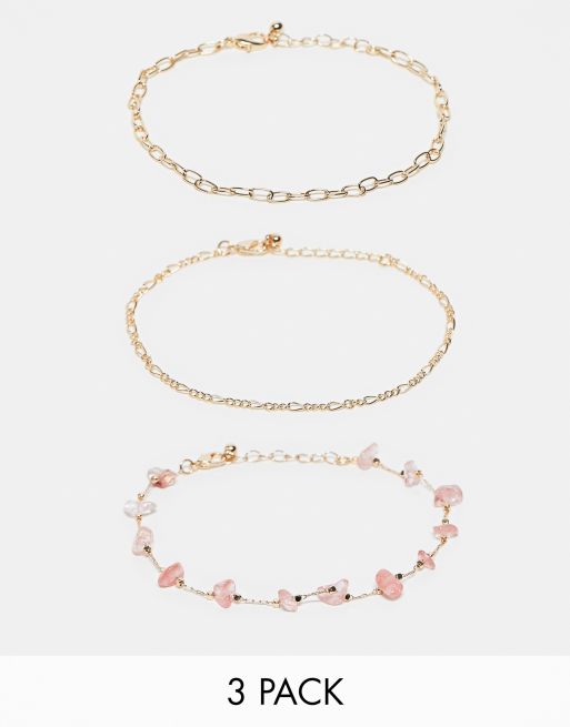ASOS DESIGN – Guldfärgade fotlänkar med äkta halvädelstensflisor, 3-pack