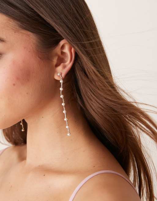 ASOS DESIGN – Guldfärgade, hängande örhängen med linjära och pärlprydda detaljer