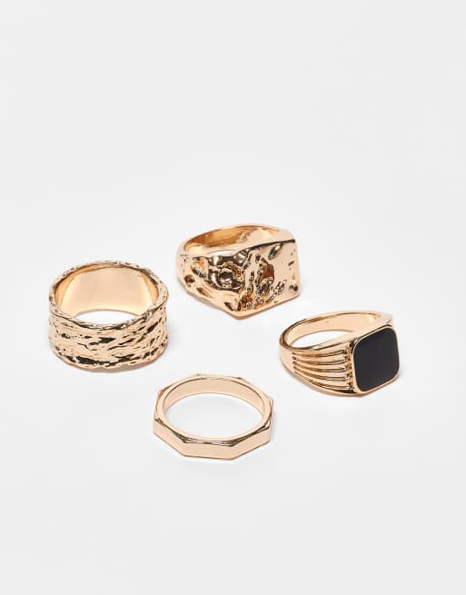 ASOS DESIGN – Guldfärgade klackringar med smält design, 4-pack