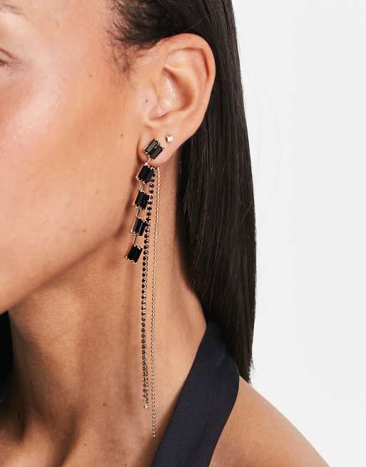 ASOS DESIGN – Guldfärgade örhängen med svarta stenar som hänger