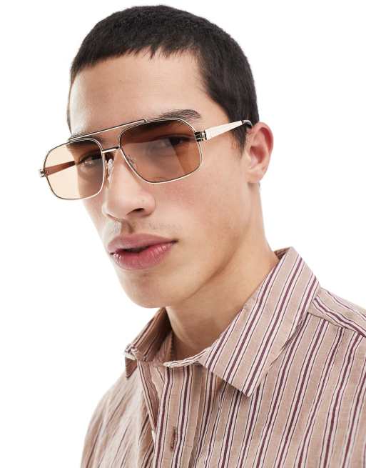 ASOS DESIGN – Guldfärgade pilotsolglasögon med bruna glas
