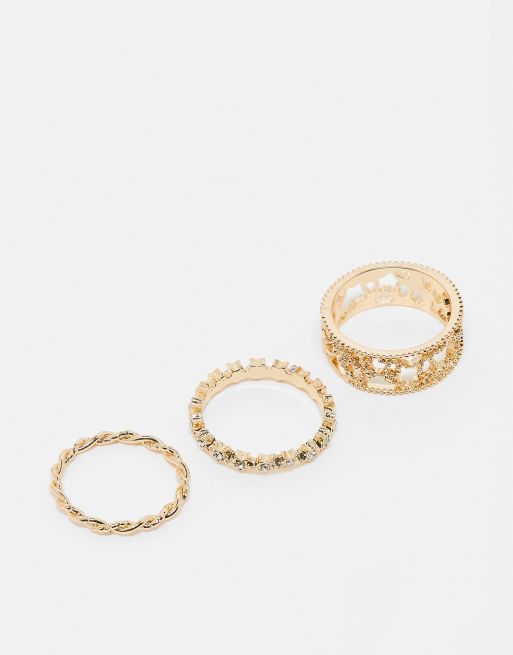 ASOS DESIGN – Guldfärgade ringar med en stjärndesign, 3-pack