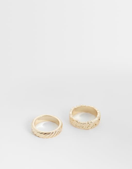 ASOS DESIGN – Guldfärgade ringar med smält textur, 2-pack