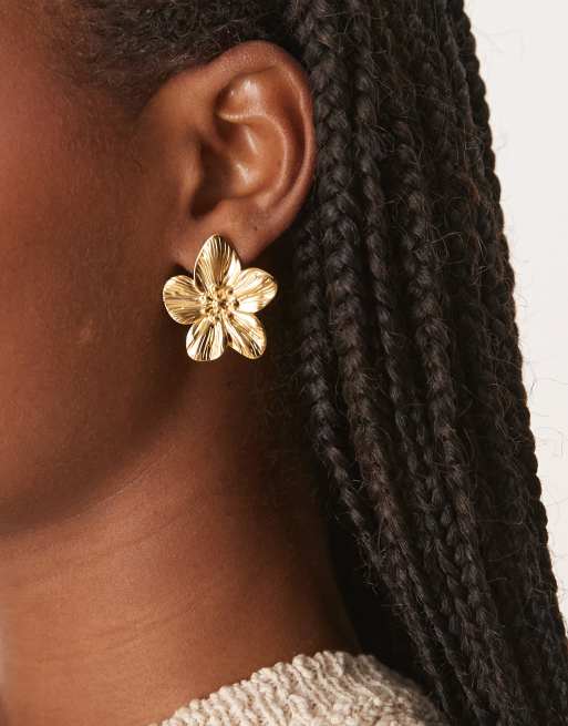 ASOS DESIGN – Guldfärgade stiftörhängen med blomdesign i vattentåligt, rostfritt stål