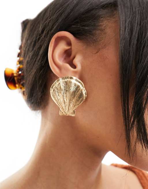 ASOS DESIGN – Guldfärgade stiftörhängen med snäckdesign
